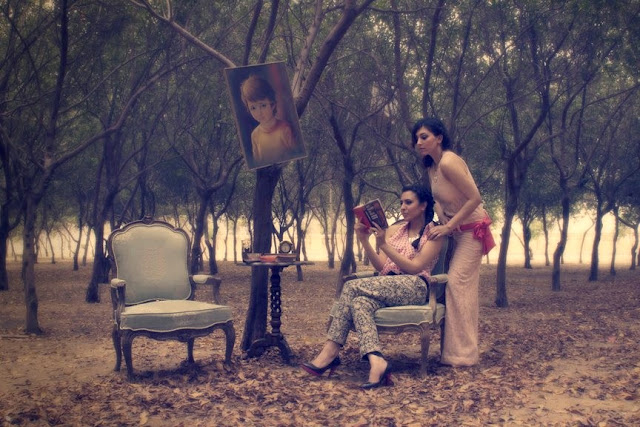 "Welcome To My Tea Party" is what Zari Faisal and Meher Bano Qureshi decided to call this this collection, Their western wear line. it's an insouciant title though of by two young women who enjoy fashion and are making clothes they would wear, reaching out to their kind, the proverbial PYT who parties and goes out about town. Using pleated chiffon, net, lace and fine fabrics procured from bazaars all over, they've come up with tops and tunics that are priced for around three grand, the cigarette pants and culottes approach the six grand mark while the most expensive pieces shown here are the gold lame jumpsuit for 12 grand and the purple gown which is pure silk for 14. Upcoming photographer Adeela Badshah set the tea party collection in a picnic setting in wood evoking the feel of wonderland. This is a dream world created by and for young women about to set out to chase the rainbow and look fan while doing it.